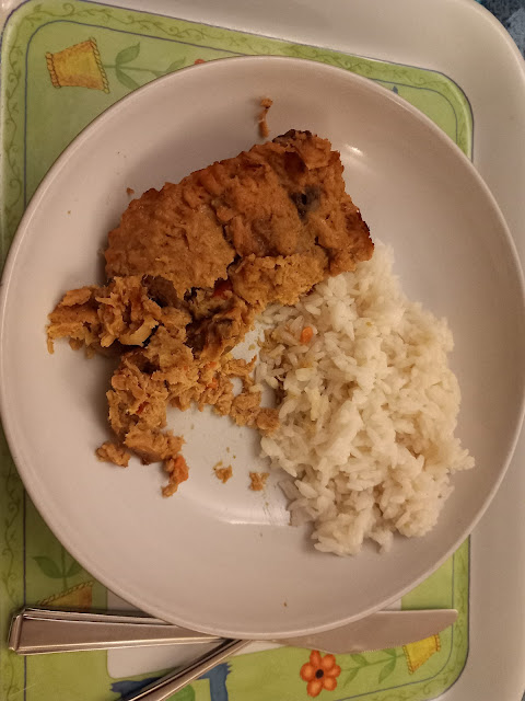 Wednesday - Crustless cheese & onion quiche, large mushroom and homemade chips